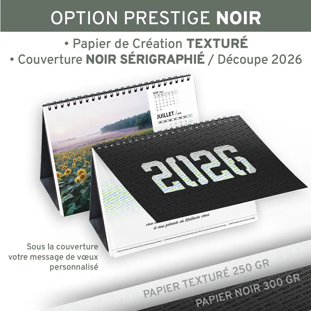 Calendrier option couverture noire + enveloppe : 169g.