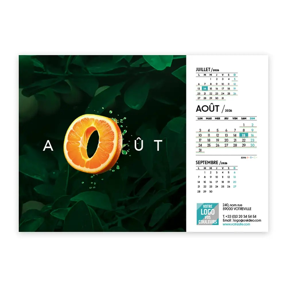 Utilisez vos propres photos pour créer un calendrier chevalet véritablement unique. Ce style permet une personnalisation complète. Vous transformez ainsi chaque feuillet de votre calendrier de bureau en vitrine pour votre entreprise. C'est l'option parfaite pour les entreprises qui veulent mettre en avant des projets spécifiques ou des événements marquants de l'année.