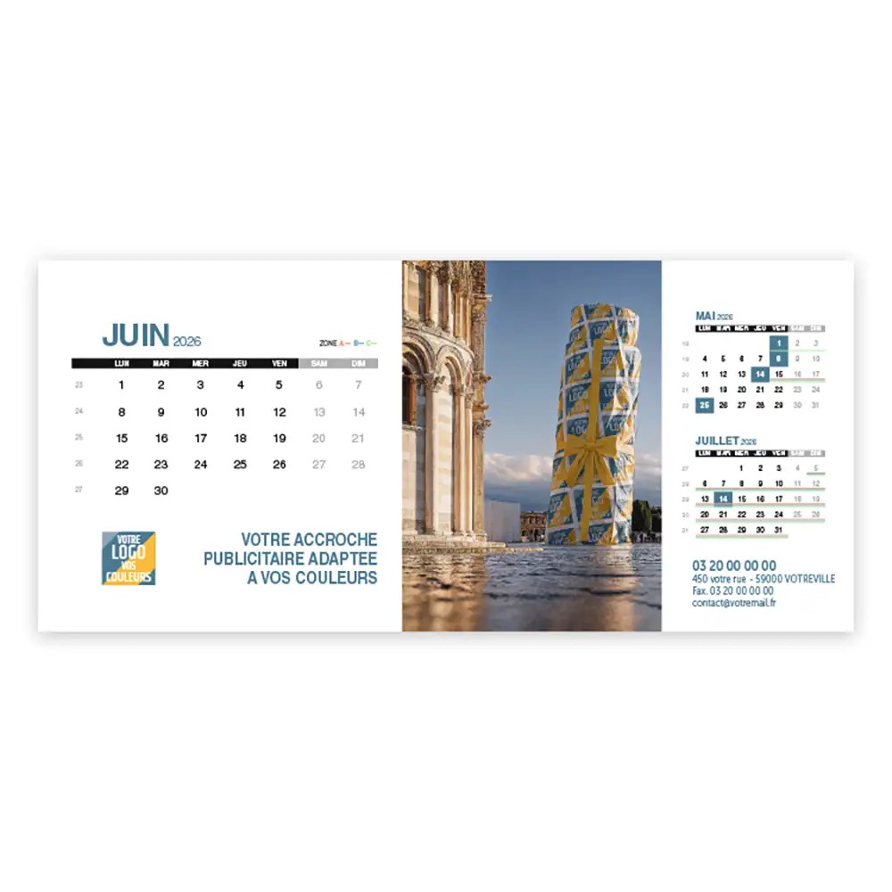 Pour personnaliser vos calendriers chevalets, choisissez parmi nos thèmes de photos : Nature, Urbain, Sportif, Culture, Entreprise... En choisissant un thème graphique, vous renforcez votre identité de marque. De plus, vous offrez un calendrier de bureau magnifiquement illustré.