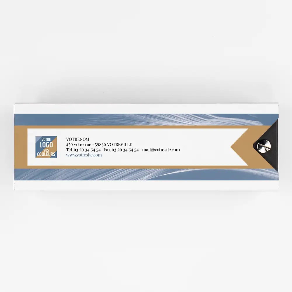 Notre carton blanc de 300 gr avec un verso pelliculé or offre une finition impeccable et prestigieuse pour vos cartes de vœux. Le pelliculage or à l'arrière ajoute une touche de sophistication et d'exclusivité, idéale pour les cartes qui doivent se démarquer.