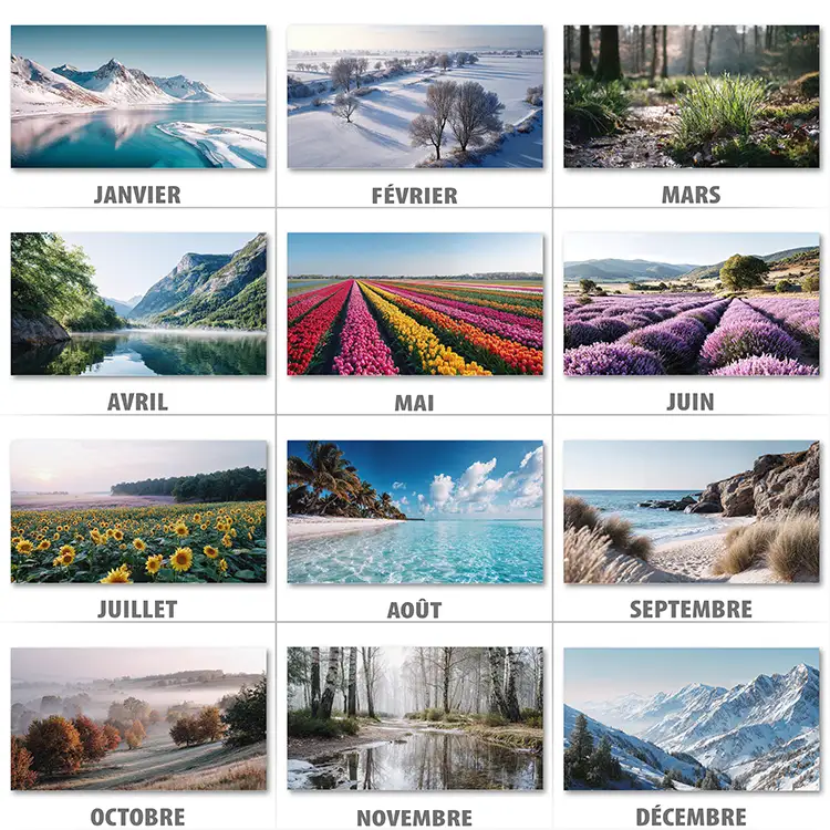 Papiers | Coffret : papier cartonné 300g / Calendrier : papier de création 250g |
