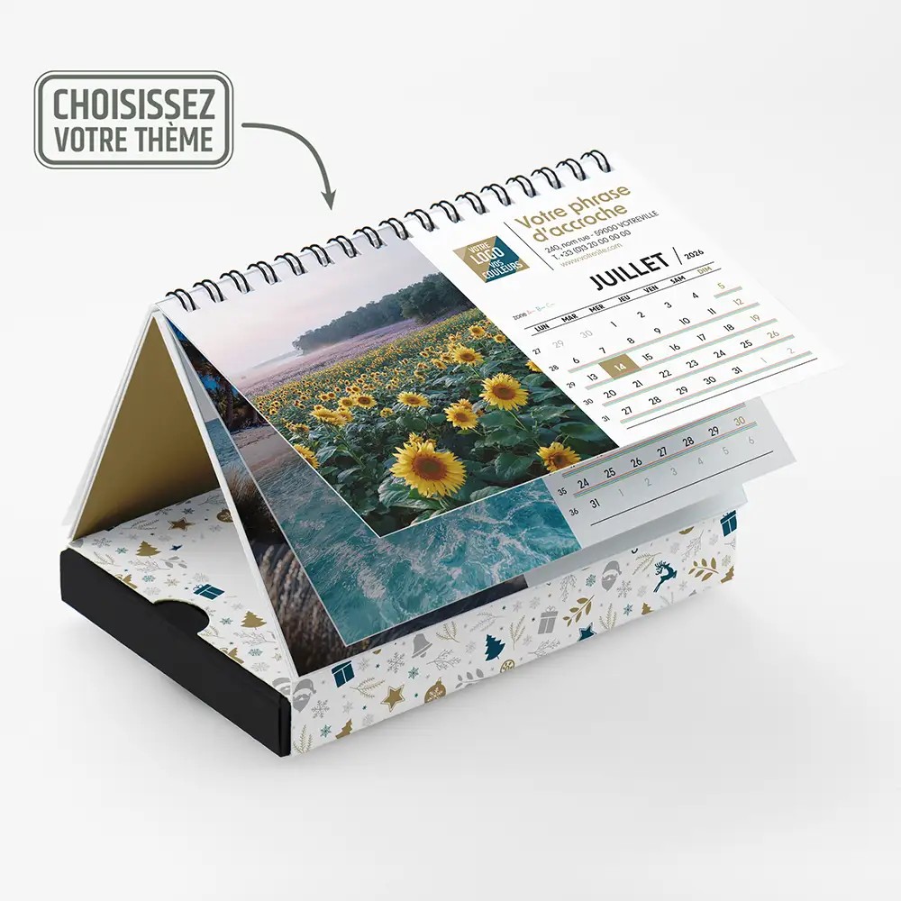 Coffret : papier cartonné 300g / Calendrier : papier de création 250g
