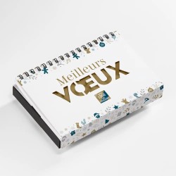 Notre carte de vœux personnalisée Calcao est un véritable 3-en-1 : carte de vœux, calendrier et boîte à caramels. Qui dit mieux pour bien commencer l’année ? Découvrez un coffret astucieux garni de caramels, qui se transforme en calendrier chevalet, le tout personnalisable aux couleurs de votre entreprise. Une carte de vœux originale et pratique, que l’on garde sous les yeux toute l’année ! En savoir plus