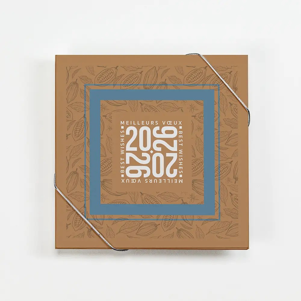 Cette année, optez pour une carte de voeux personnalisée 2-en-1, avec notre carte de voeux Écrin. Envoyez vos voeux de nouvelle année sur une belle carte personnalisée aux couleurs de votre marque et qui dévoile des carrés de chocolat Monbana. Bonne année les gourmands ! En savoir plus